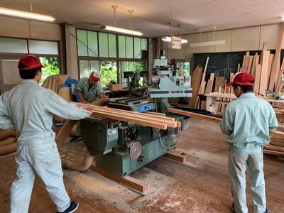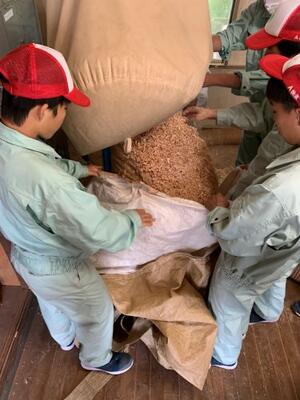 環境コースでは、木材加工をする前に材料準備をします。自分たちで自動かんな盤でカンナがけをするのですが、カンナくずは捨てたりはしません。馬術部の馬の敷料(馬の寝床♪)にするのです。なんと、これにはプリントのシュレッダーくずも混ぜています。本来捨てるものを活用する。これこそSDGsですね!!!。