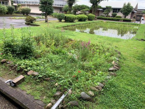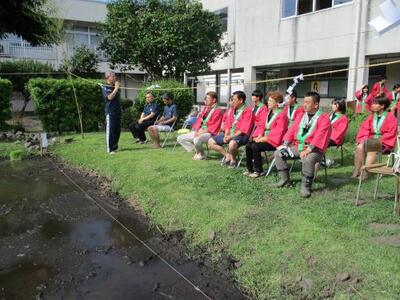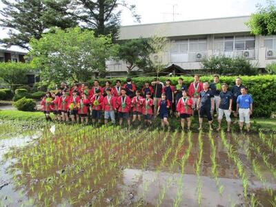 南稜三福田御田植祭が無事、執り行なわれました。これは平成18年から続いているもので、生徒昇降口前にある三福田にみんなで田植えをするものです。農業をとおして教育を行う南稜高校の根幹となっています。
