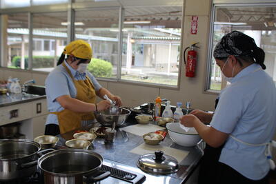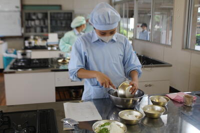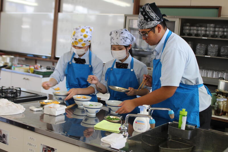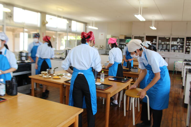 家庭科としては初めての調理実習でしたが、普段から専門授業で鍛えられた手際の良さを見せてくれました