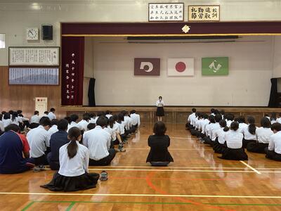 学年集会の司会は生徒会長の田爪さんが務めましたありがとうございました