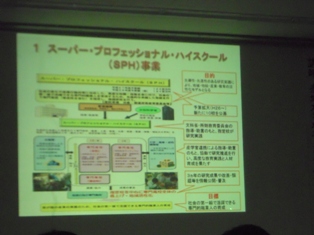 会議内容は、スーパー・プロフェッショナル・ハイスクールの事業説明、本校のこれまでの取り組みなどを紹介した後、
