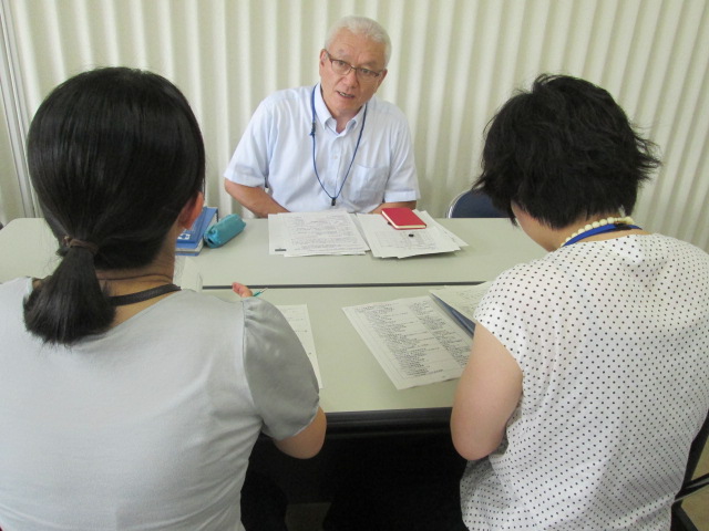 応接室で学校からの説明             研修場所の確認