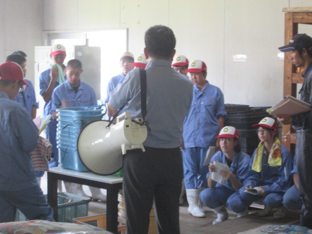 NPO法人アジアGAP総合研究所 特任指導員の寺田様から生徒12名に対し、ご指導を頂き、それを聴講する形式で行われた。九州農政局の方々、熊本県農林水産部生産経営局農業技術課の渡邉参事や県南広域本部球磨地域振興局農林水産部農業普及・振興課の方々。農業関係高校の先生方12名。合計41名が参加。農場の実地指導の後、再び、会議室でまとめを行い、生徒からの質問にも答えていただいた。