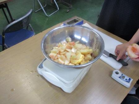 一部傷がある桃の皮と種を除いて2Kgの果実を原料としました。