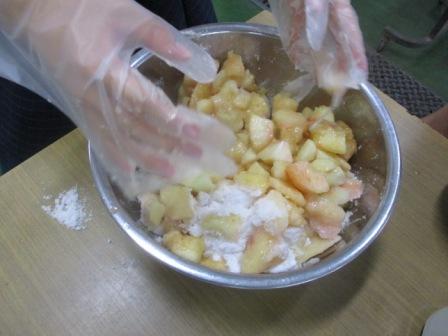 桃は完熟してからの収穫となるため、傷みがはやく、また、その甘さから害虫による食害も少なくありません。そのため販売できない規格外生産物の割合が高く、それらの活用法の一つとして桃ジャムに「取り組みました。2Kgの規格外桃から100gの小瓶8本分のジャムができました。完成までに掛かった時間は3時間で、思った以上に手間がかかり、農繁期に農家がジャムまでつくることは困難ではと思いました。今後は冷凍果実で試作してみます。