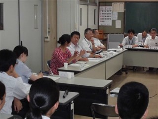 運営指導委員の8名の方々、熊本県教育委員会、農林水産部農地・担い手支援課、本校職員らが出席。学習成果発表として、プロジェクト発表、食品科学科3年石川さんらの「栗と麹の素敵な出会い~それは本当に素敵な出会いだったのか?~」、意見発表、環境工学科3年 邉見くん 「緑を活かす看護師を目指して!~森林の癒し効果を、多くの人々に~」を聞いて頂きました。