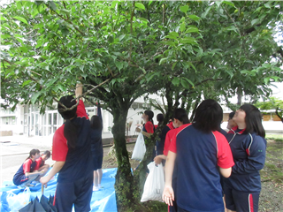 梅干しと梅シロップ作り☆ 投稿日時 : 2019/06/07 投稿者5 生活経営科の3年生が6月3日(月)に校内の梅を収穫し、 5日(水)に梅干しの下漬けと梅シロップ作りを行いました。 美味しくできあがりますように!