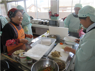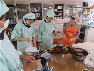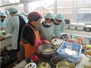 郷土料理講習会を行い、講師の鶴田さま、深水さま、吉村さまより、