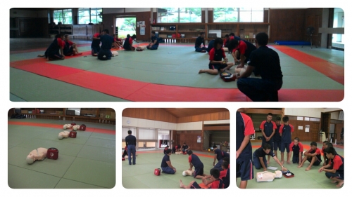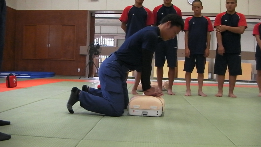 多良木中学校では、3時間講習を3年次に受講し、救命資格を取得していますが、