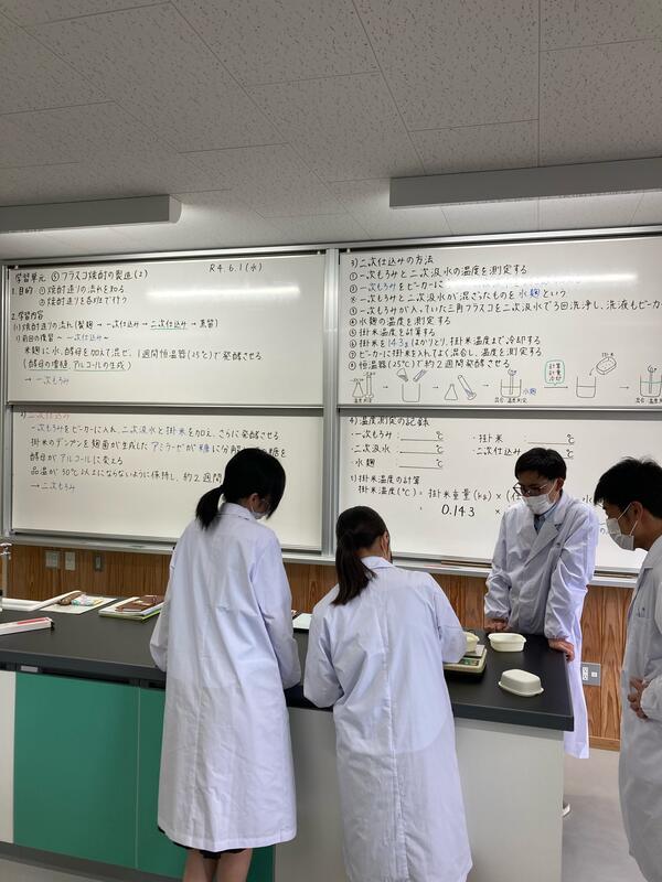 本日は、醸造の授業においてフラスコ焼酎の二次仕込みを行ない食品化学実験ではメイラード反応の実験を行いました。常に真剣に取り組む3年食品科学科の授業の様子をぜひご覧ください。