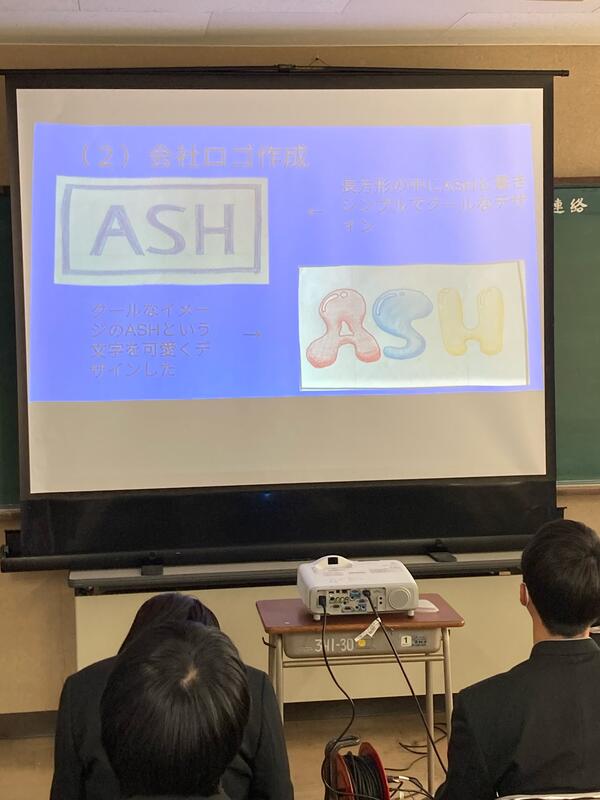 運営部に続き製造部の発表です。3年生の中で最も試作を行った班です。発表からも苦労がよくわかり、本当に頑張りました。模擬会社「ASH」は、今後企業様へのプレゼンも計画中とのことで、今後の動きが楽しみです。