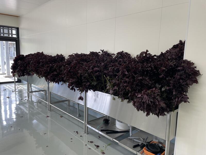 大量のシソ驚く・ビックリ食品科学科の先生方が早朝から収穫しました!これから頑張って葉っぱを収穫していきます!