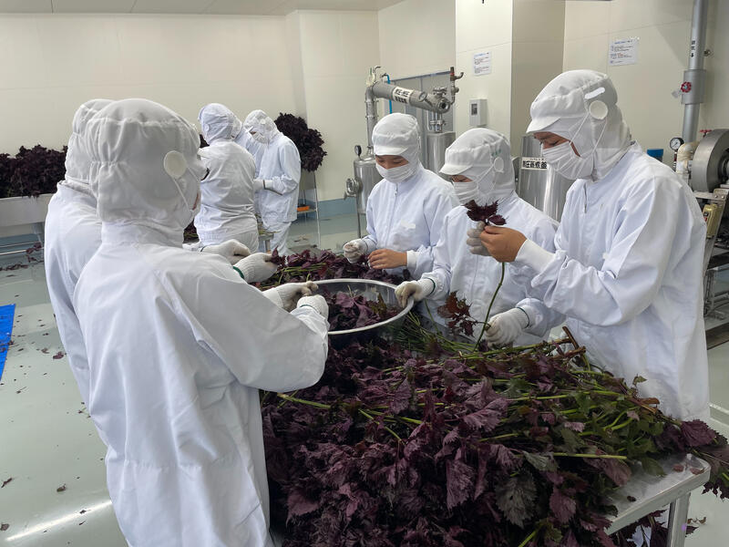 収穫したシソは、2年生の実習でシソジュースとKUMAの初恋に加工されます。