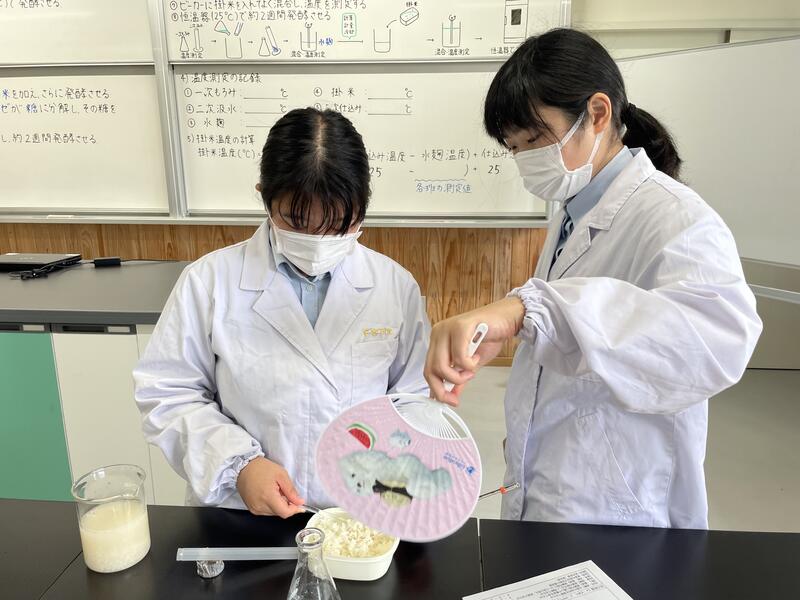 6月23日(金) 5・6限 3年生の醸造の授業でフラスコ焼酎の二次仕込みを行いました興奮・ヤッター!