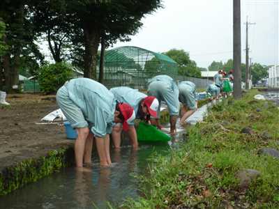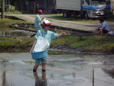 終わった後、水路で手足を洗う姿から、球磨の豊かな自然を感じます!