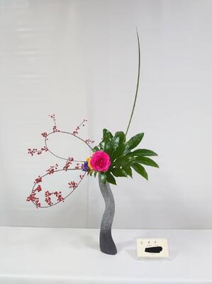 12月は、池坊人吉支部の花展に出瓶しますほくそ笑む・ニヤリ