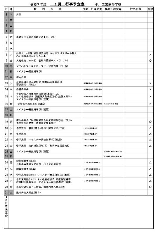 学校行事 全ての記事 全ての記事 カテゴリ 今日の出来事 連絡事項 報告事項 ミーティング 本・雑誌 ニュース 映画・テレビ 音楽 スポーツ パソコン・インターネット ペット 総合学習 アニメ・コミック アーカイブ 2025年12月 (1) 2025年11月 (1) 2025年10月 (1) 2025年9月 (2) 2025年8月 (0) 2025年7月 (1) 2025年6月 (1) 2025年5月 (0) 2025年4月 (2) 2025年3月 (0) 2025年2月 (1) 2025年1月 (1) 2024年12月 (1) 2024年11月 (1) 2024年10月 (1) 2024年9月 (1) 2024年8月 (1) 2024年7月 (1) 2024年6月 (1) 2024年5月 (1) 2024年4月 (2) 2024年3月 (0) 2024年2月 (1) 2024年1月 (1) 2023年12月 (1) 2023年11月 (1) 2023年10月 (1) 2023年9月 (1) 2023年8月 (1) 2023年7月 (1) 2023年6月 (3) 2023年5月 (1) 2023年4月 (2) 2023年3月 (0) 2023年2月 (1) 2023年1月 (1) 2022年12月 (1) 2022年11月 (1) 2022年10月 (1) 2022年9月 (1) 2022年8月 (1) 2022年7月 (0) 2022年6月 (1) 2022年5月 (1) 2022年4月 (2) 2022年3月 (0) 2022年2月 (1) 2022年1月 (1) 2021年12月 (1) 2021年11月 (1) 2021年10月 (1) 2021年9月 (1) 2021年8月 (1) 2021年7月 (1) 2021年6月 (1) 2021年5月 (1) 2021年4月 (2) 2021年3月 (0) 2021年2月 (1) 2021年1月 (1) 2020年12月 (1) 2020年11月 (1) 2020年10月 (1) 2020年9月 (1) 2020年8月 (1) 2020年7月 (1) 2020年6月 (2) 2020年5月 (0) 2020年4月 (1) 2020年3月 (0) 2020年2月 (0) 2020年1月 (0) 2019年12月 (0) 2019年11月 (0) 2019年10月 (0) 2019年9月 (0) 2019年8月 (0) 2019年7月 (0) 2019年6月 (0) 2019年5月 (0) 2019年4月 (1) 2019年3月 (0) 2019年2月 (1) 2019年1月 (0) 2018年12月 (1) 2018年11月 (0) 2018年10月 (1) 2018年9月 (0) 2018年8月 (1) 2018年7月 (0) 2018年6月 (1) 2018年5月 (1) 2018年4月 (2) 2018年3月 (0) 2018年2月 (1) 2018年1月 (1) 1件 1件 5件 10件 20件 50件 100件 1月 2月 行事予定 投稿日時 : 12/22 学校サイト管理者 1月の行事予定 R81月 行事予定 .pdf 2月は変更される可能性があります。 123456789 »
