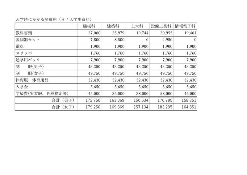 令和7年度 入学にかかる諸経費についてPDFファイルでのダウンロードはこちらより→R7入学諸経費.pdf