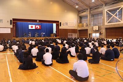 MCの中で、番匠谷さんから、体育館に座っている生徒に「お尻痛くないですか?」とお心遣いのコメントを頂きました。