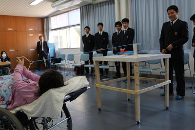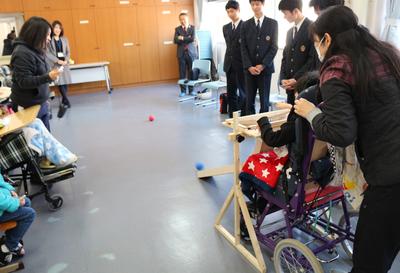 松橋東支援学校では、ボッチャランプ(機械科)とバッティングボード(土木科)を贈呈し、支援学校の生徒と交流会をさせていただきました。