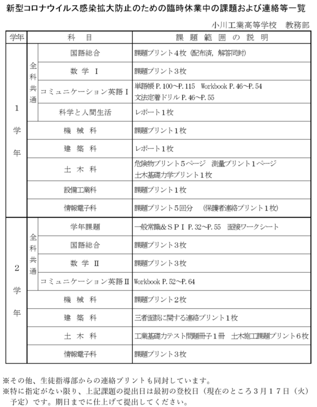 学校休校中の課題について