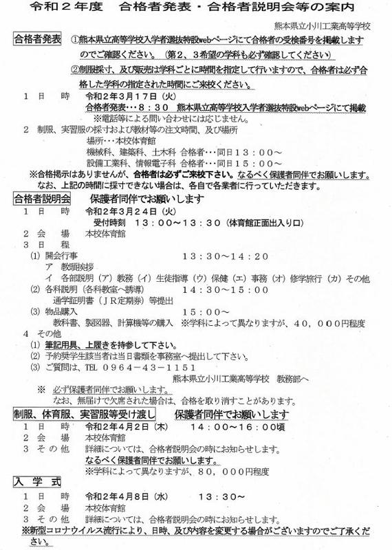 受験生のみなさま令和2年度 合格発表・合格者説明会等の案内