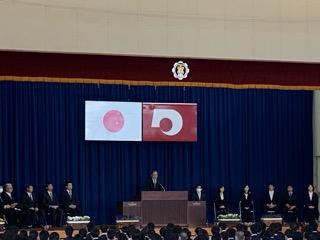 学校長や来賓の方々からの祝辞や、生徒会長の福田君からの歓迎の言葉をいただきました。