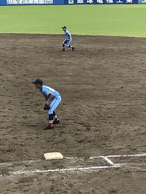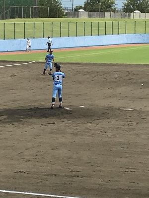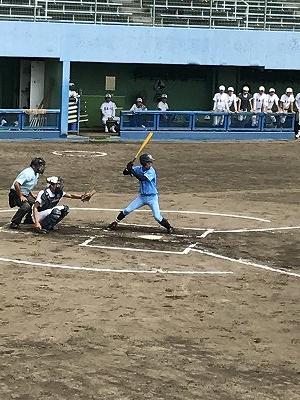 新チームで初めての公式戦であり、相手は第一高校。初戦の緊張感はあまり感じられず、野入(建築科2年、八代一中)の先発で始まった。初回の第一高校の攻撃で2点を奪われ、4回に1点差に縮めたが、5回表に1点失点し、良くない流れを感じた。しかし、5回裏に出塁を重ねながら、平川(建築科2年、松橋中)、松本(土木科2年、下城南中)、野入(建築科2年、八代一中)の連打で一揆に5対3と逆転した。さらに6回には上田(土木科2年、松橋中)、平川(建築科2年、松橋中)の適時打で9対3、さらに7回に1点とり、10対3でコールド勝ちした。3回戦は26日に翔揚高校とベスト8をかけて対戦する。