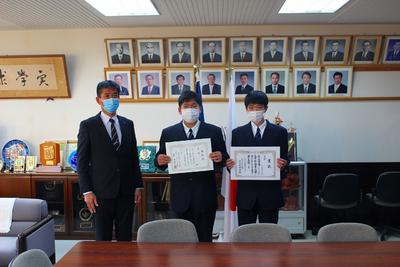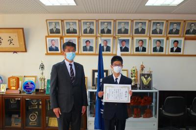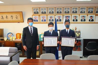 本日、令和2年度第1回表彰式を校長室で行いました。