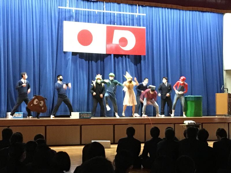 MCの中で、番匠谷さんから、体育館に座っている生徒に「お尻痛くないですか?」とお心遣いのコメントを頂きました。