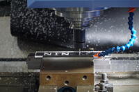 (PCでデザインして、マシニングセンタで加工する装置を見学する様子)