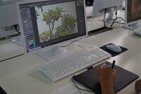 (実際にトレース版を用いてイラストを描き、なぞった跡を確認している様子)