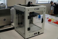 (小型3Dプリンターを使用した作成過程の展示の様子)