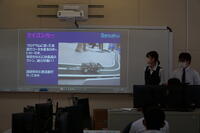 (スライドでの学科説明:課題研究のマイコンカーの動画) (大型3Dプリンター)