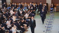 新入生達は、それぞれ担任の先生に連なって、元気良い足取りで体育館に入場しました。
