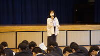 MCの中で、番匠谷さんから、体育館に座っている生徒に「お尻痛くないですか?」とお心遣いのコメントを頂きました。