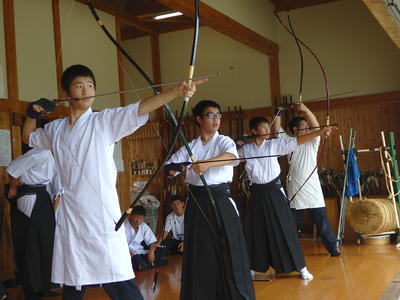 3年生と2年生には中学校で経験している部員もおりますが、大半は高校に入学してから弓道を始めて日々の練習を積み重ねて成長しているところです。