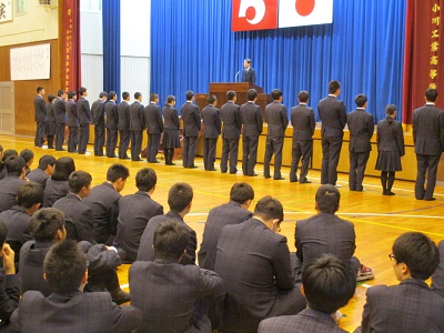 生徒会メンバーを代表し、生徒会長の機械科3年野中くんより全校生徒へ最後の挨拶がありました。