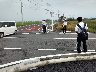 秋の交通安全週間にあわせて、本校の交通委員の生徒が昨日(9月21日)より3日間、朝から交通指導をおこなっています。