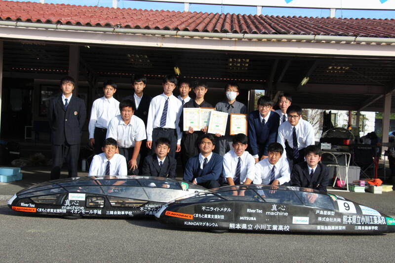 本校は、一人乗りの競技用電気自動車(エコデンカー)の研究・製作を行っています。省エネを競うレースに参加しており、九州大会では連覇をつづけています。また、2019年の全国大会で2部門優勝するなど高い技術力を持っています。
