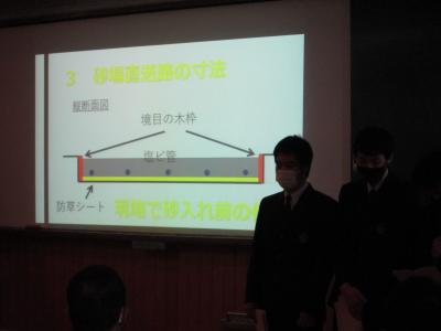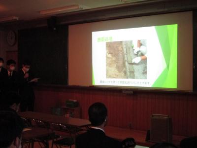 新実習棟内整備や道路に水がたまっているのを改善する取組などの成果をまとめ発表しました。