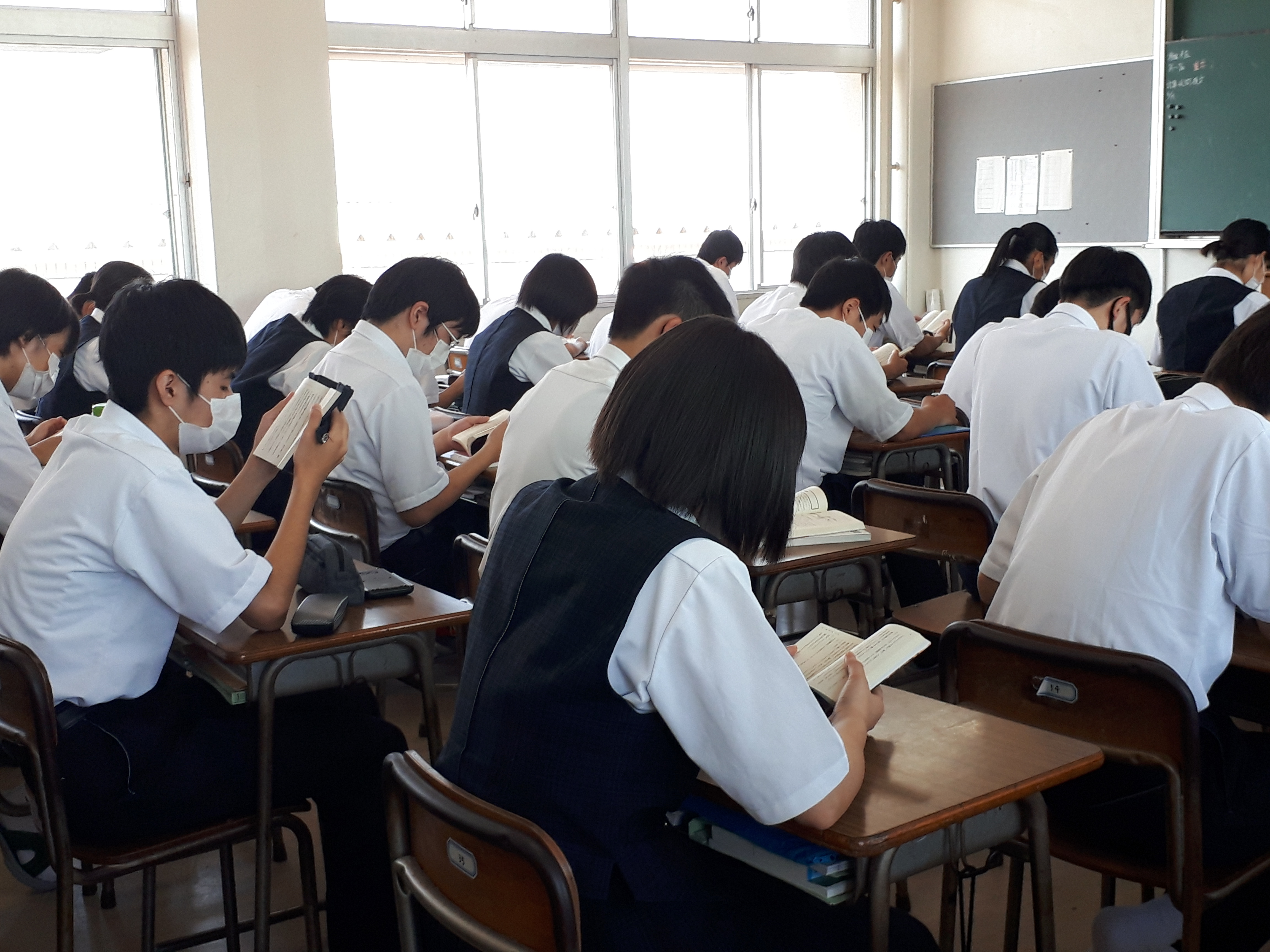 朝読書スタート! 投稿日時 : 2020/06/22 職員 カテゴリ:報告事項 2020年度の朝読書が17日(水)スタートしました。 ようやく始められた朝読書。取り組む様子をご覧ください。20200622_084044.jpg20200622_084108.jpg