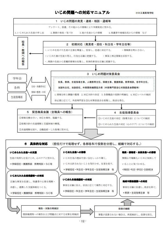 「学校いじめ防止基本方針」(令和3年3月改定)を掲載しました。 投稿日時 : 2017/09/04 学校サイト管理者 「学校いじめ防止基本方針」(令和3年3月改定)を掲載しました。画像が見づらい場合はPDFにてご覧ください。R3小川工高 学校いじめ防止対策マニュアル(R2改訂).pdf
