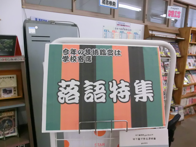 来月の芸術鑑賞会で「学校寄席」を鑑賞しますので、予習のために展示しました。