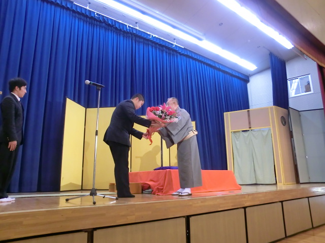 プロの噺家による落語に、生徒職員ともども大笑い。