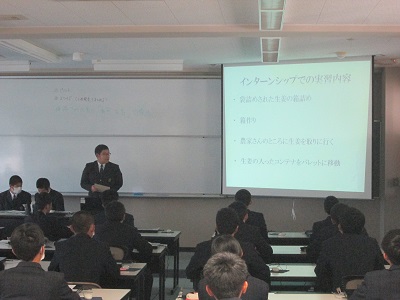来年インターンシップに参加する1年生に向けて、どのような企業でどんな作業をしたか、経験から何を学んだかを1人1人発表しました。