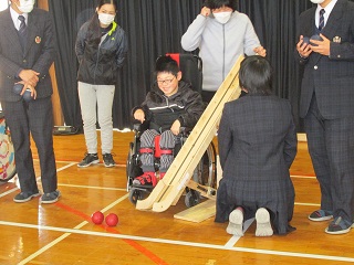 機械科の課題研究で生徒が製作したボッチャの贈呈式がおこなわれました。