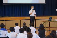 7月28日(木)、快晴の夏空の下、「中学生体験入学」が行われました。コロナ感染防止の観点から、午前と午後の2回に分けて実施されました。