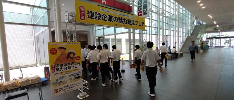 グランメッセ熊本において実施された熊本県土木部監理課主催の『熊本県建設企業の魅力発見フェア』に建築科3年生と土木科3年生が参加しました。