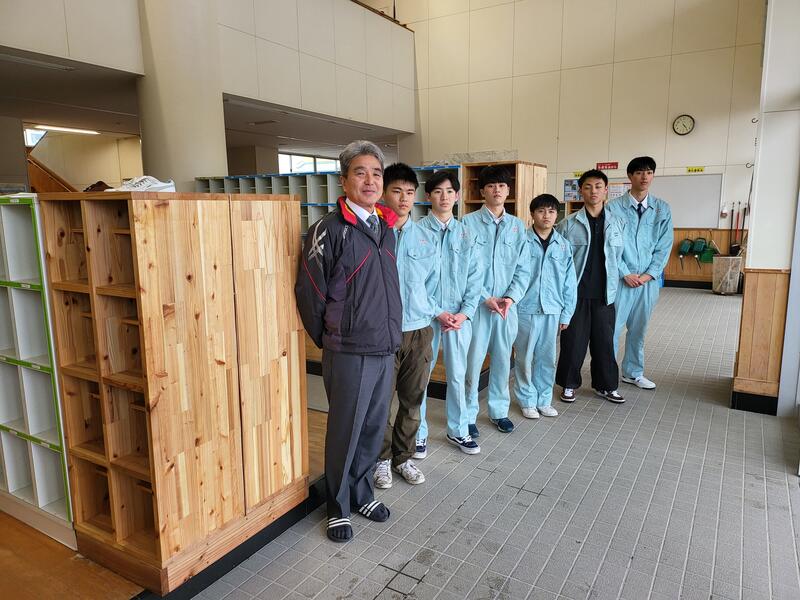 建築制作部で河江小学校の下足箱製作・寄贈
